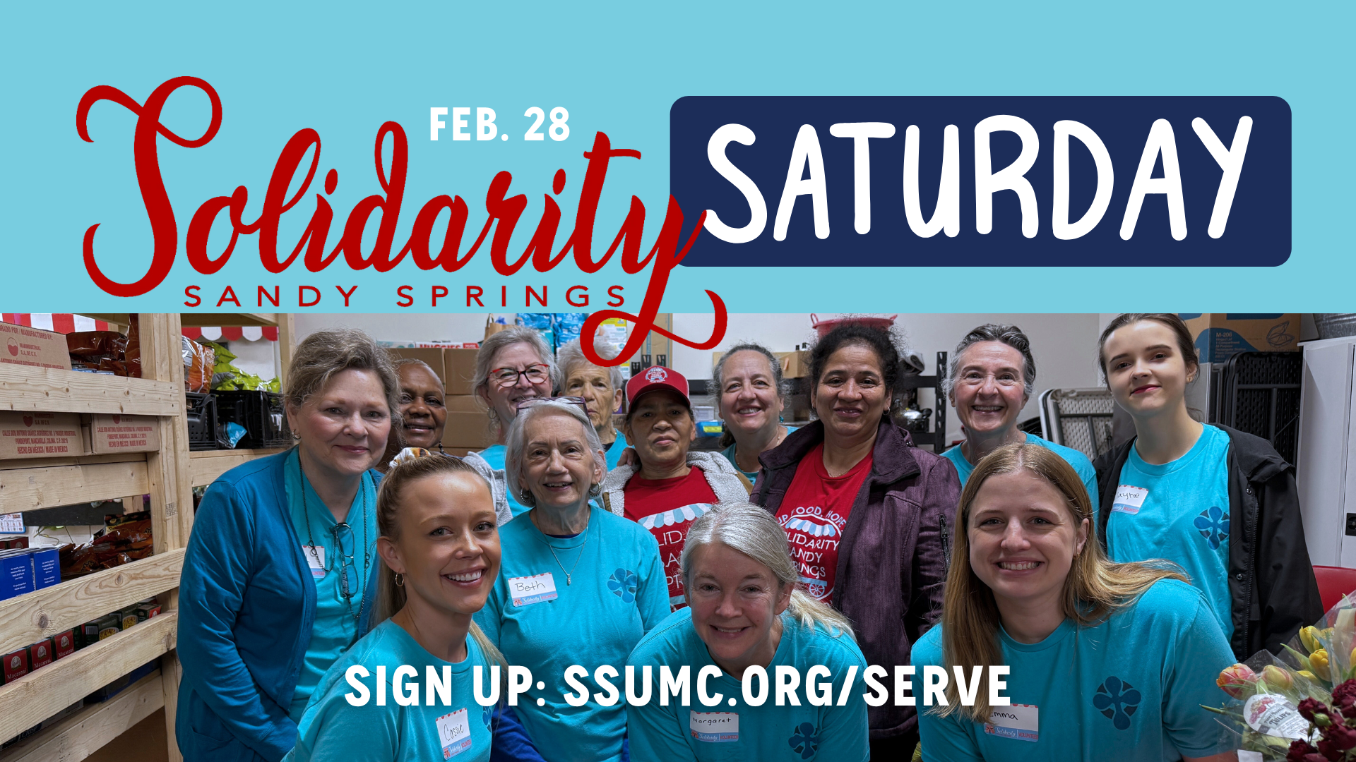 Join us on Saturday, Feb. 28, as we volunteer with Solidarity Sandy Springs to support food-insecure families in our area. Solidarity Sandy Springs works to address food insecurity by connecting neighbors in need with essential resources and building a network of care. Whether you're passionate about service, want to meet your neighbors, or are simply looking for a meaningful way to make a difference, this is a wonderful opportunity to put our faith into action. All ages welcome.